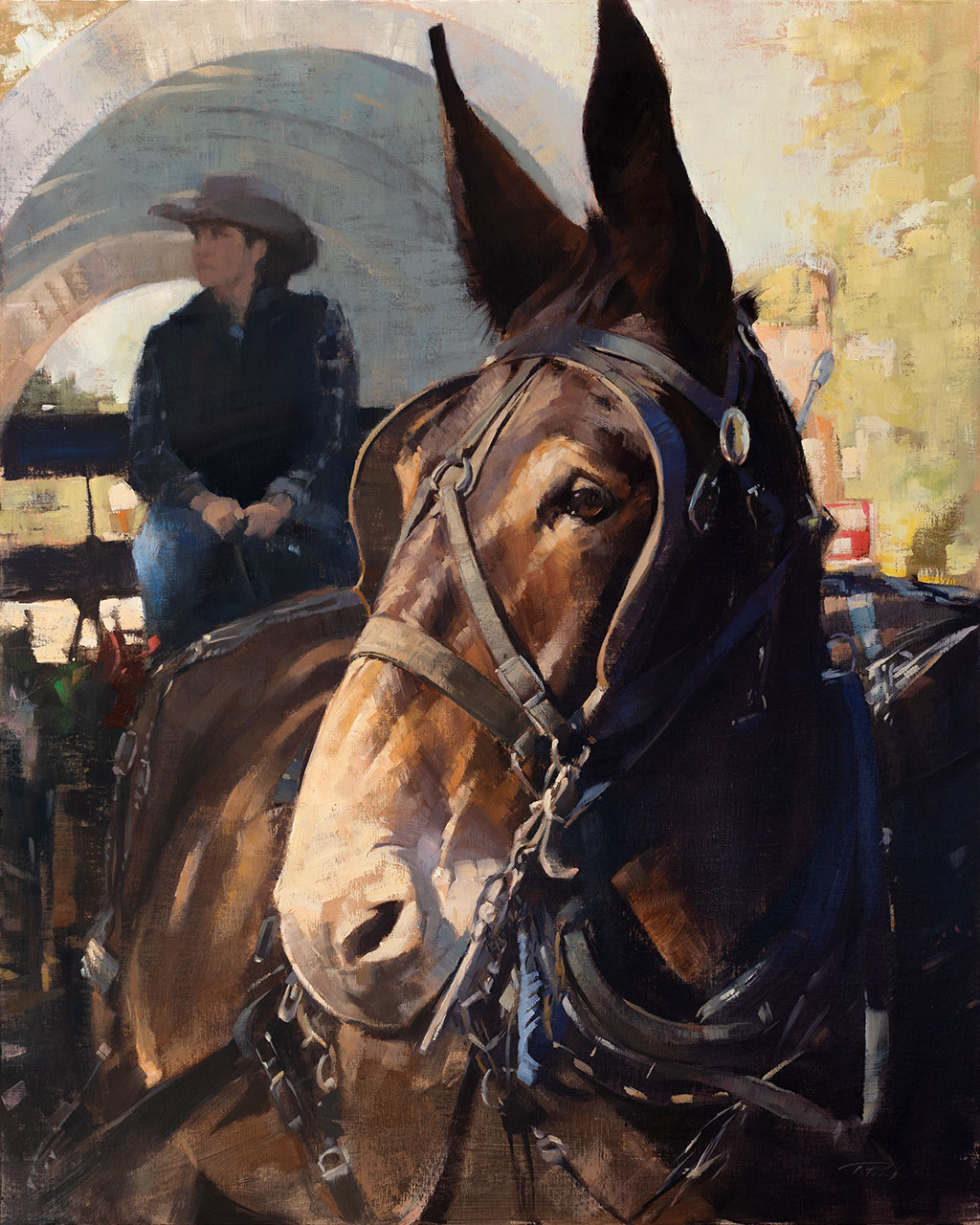This handsome guy patiently greeted visitors to the stockyards in Fort Worth, Texas. He was very curious and attentive to everyone that approached him. This is a larger piece for me, as I wanted to depict him closer to life size in order to capture the impact of his expression. |