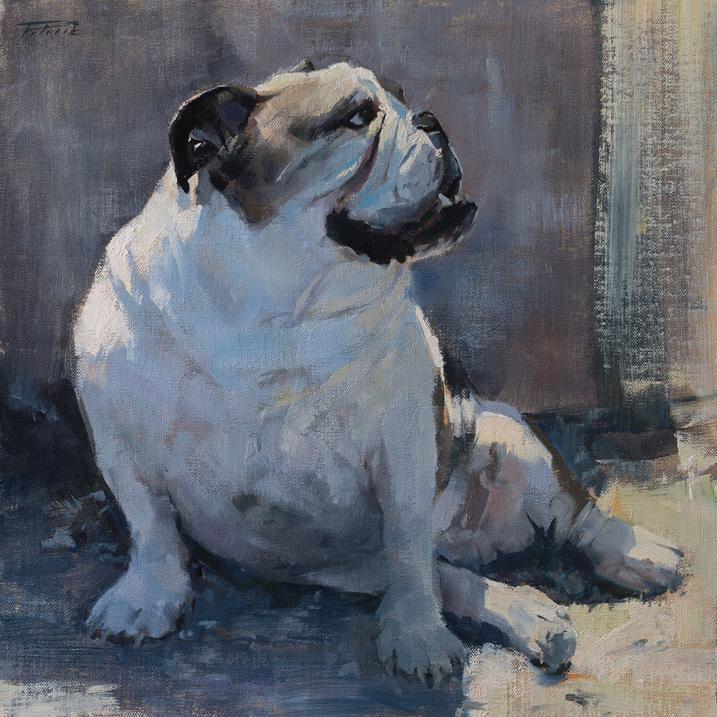 We met Chester the English Bulldog at a winery in Augusta, MO during one of my plein air workshops. Chester welcomed everyone, offering a wave of hello to all whom he met.