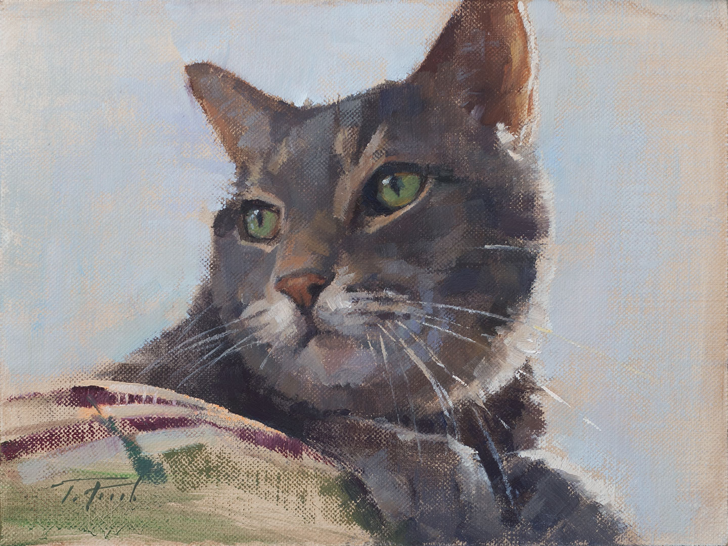 Ken was a a great studio cat. He often lingered around the easel as I painted, offering words of wisdom in some language that I could never understand. Whenever I struggled with a painting, I thankfully had him to vent my frustrations to verbally, and he would usually talk right back at me. I like to think that he was completely supportive and always in agreement. I miss his critiques. |